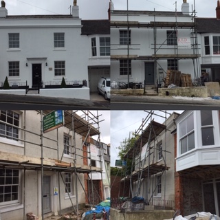 The white house shown above as an example was a property that was particularly derelict and in a very bad state of repair. I was asked to look at this project by the developer. A site meeting was held with a specialist from Keim mineral paints to work out a spec and then began the task of redecorating the property.